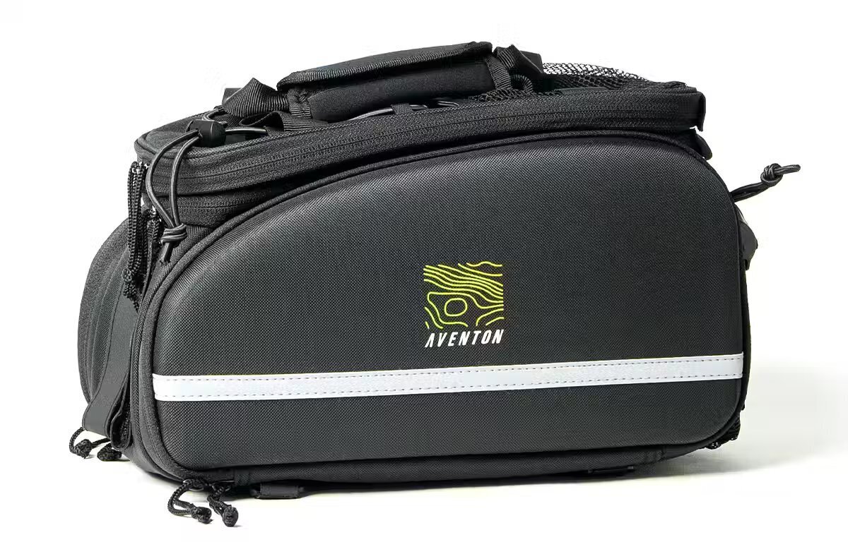 The Aventon Rack Top Bag is the ultimate accessory for your commute. This bag features a spacious main compartment that is conveniently divided for safe & easy organization. The Rack Top Bag also expands into two expandable pannier side panels, allowing you to carry even more essentials on your ride. It's built to withstand the demands of your active lifestyle, ensuring that your belongings stay safe and secure throughout your journey on the road.